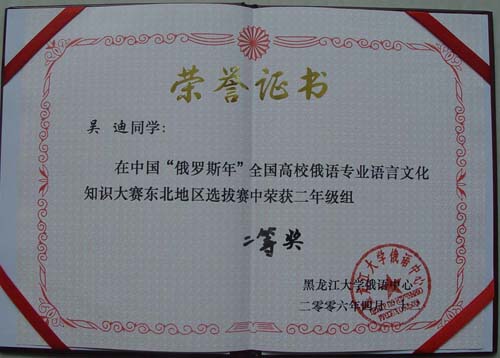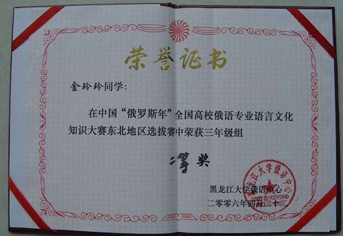为了庆祝中国“俄罗斯年”,2006年4月21-23日在美丽的滨城哈尔滨举办了《全国高校俄语专业语言文化知识大赛东北地区选拔赛》。本次大赛吸引了来自东北和内蒙古地区的17所高校,其中包括黑龙江大学,大连外语学院,东北师范大学等俄语专业实力雄厚的院校,可谓强手如林。